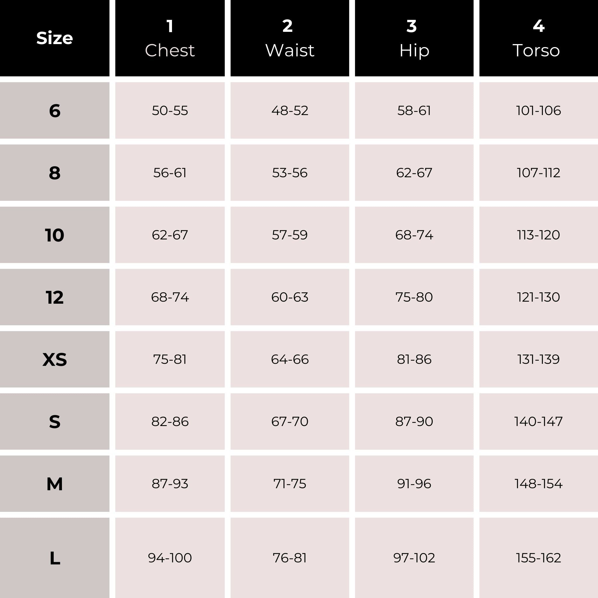 These are the measurements, in centimeters, to consider when choosing from our Girl Collections.